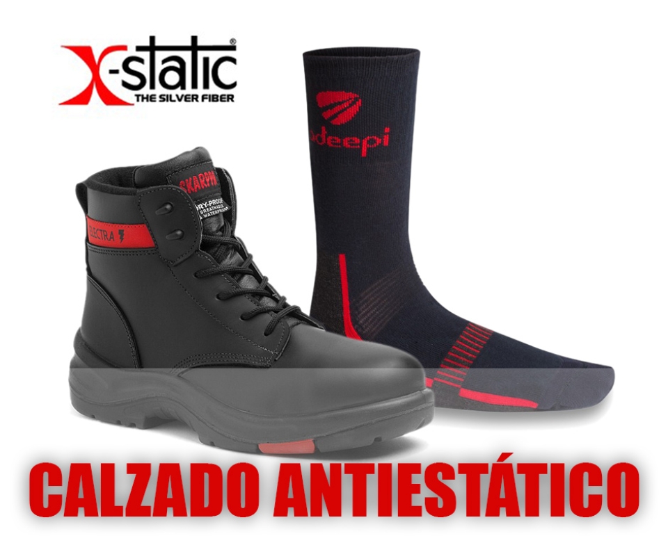El calcetín normalmente siendo de algodón y en condiciones normales de humedad, también es conductor. Sin embargo, para un aseguramiento total, SKARPPA propone calcetines ANTIESTÁTICOS con hilo conductor (X-static, modelo ACONCAGUA)