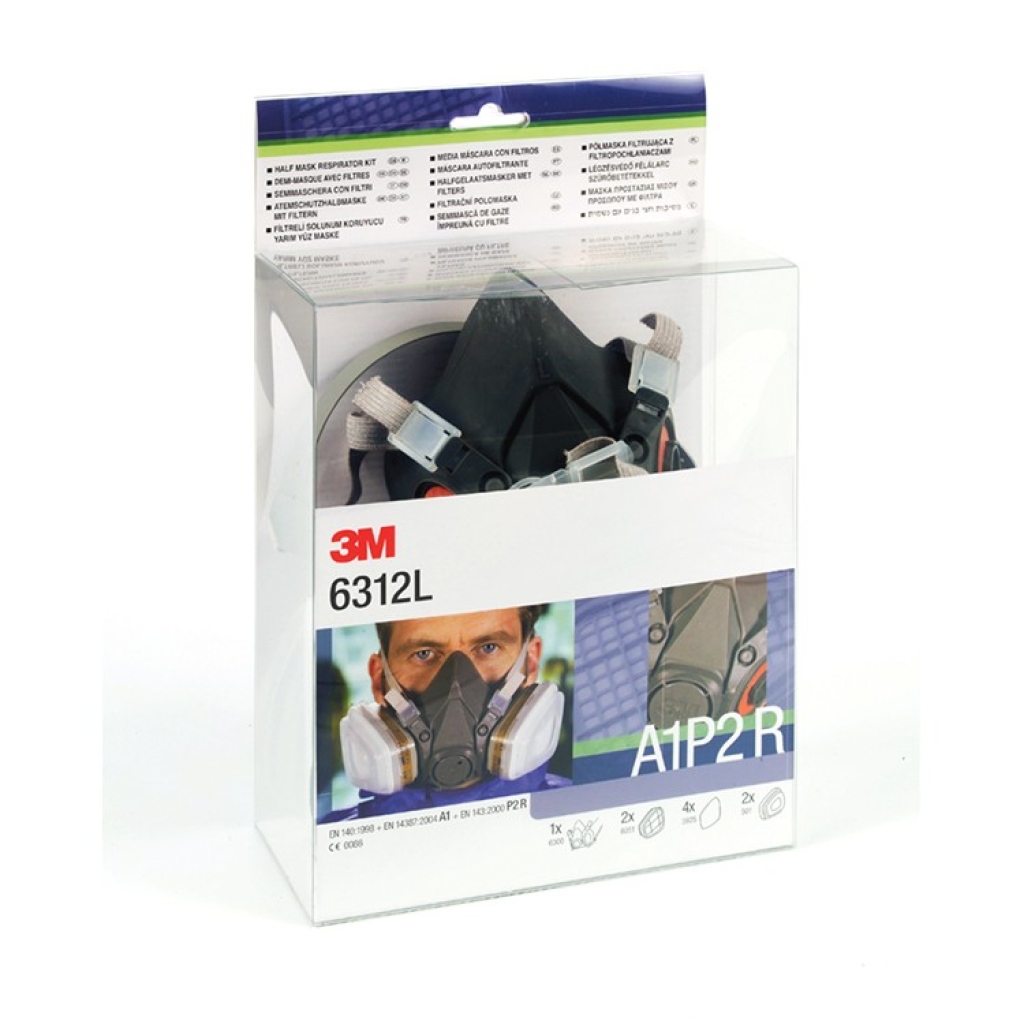 La media máscara 3M serie 6000 se utiliza en combinación con dos filtros ligeros que se acoplan a la pieza facial mediante un ajuste tipo bayoneta. Esta pieza facial puede también utilizarse con el sistema de suministro de aire 3M S200 proporcionando de esta manera una mayor flexibilidad y confort.