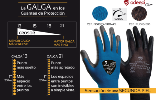 Al elegir guantes de trabajo tejidos a máquina, probablemente te habrás dado cuenta de que la mayoría de las descripciones incluyen la galga del guante. La galga de un guante se define como el número de puntadas incluidas en cada pulgada (2,54 cm) de material, pero ¿qué significa esto exactamente?