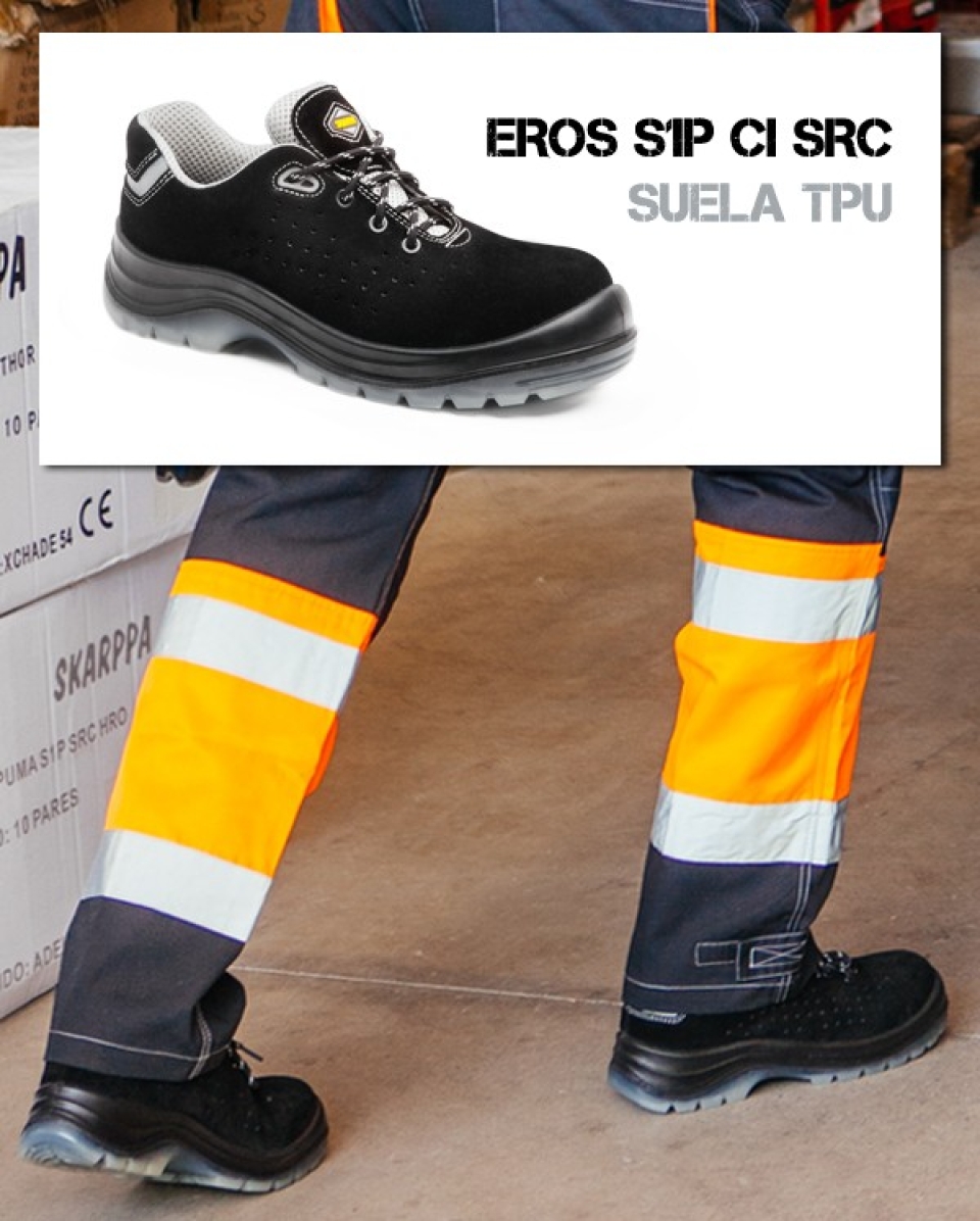 Ideal para trabajadores que soportan calor, bien por el ambiente u ocasionado por la tarea, en interiores o exteriores en condiciones no húmedas con pisos agresivos.