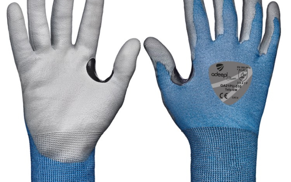 ADEEPI presenta un guante que usa hilo tungsteno trenzado junto con otras fibras, lo que le confiere el más alto valor anticorte pero con una ligereza sin igual. Con un recubrimiento de PU en palma y uñeros, así como un refuerzo entre pulgar e índice para mayor durabilidad del modelo, su ligereza aporta un destreza máxima para manipulaciones delicadas sin riesgos de sufrir cortes.