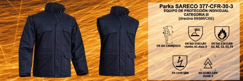 Dentro de la colección de prendas SARECO (línea de prendas ignífugas de algodón) que GRUPO ADEEPI comercializa actualmente con gran éxito en el mercado, presentamos la última incorporación, la PARKA SARECO.