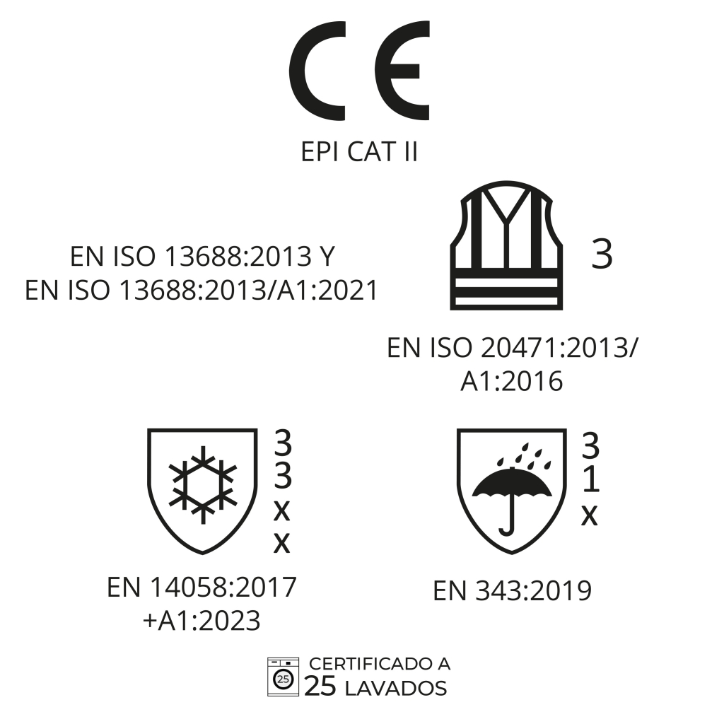 • EN ISO 20471:2013/A1:2016 Classe 2 com mangas.