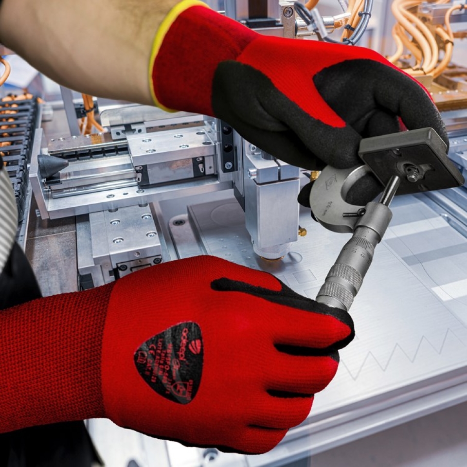 A espessura do tecido da luva será, portanto, influenciada principalmente pela bitola utilizada, mas também pela composição ou componentes do fio. Com a mesma bitola, um fio anti-corte com fibra de vidro permite obter uma trama mais compacta do que um fio de poliamida com elastano, que pode expandir-se e, por conseguinte, adaptar-se melhor aos contornos e oferecer mais respirabilidade.
